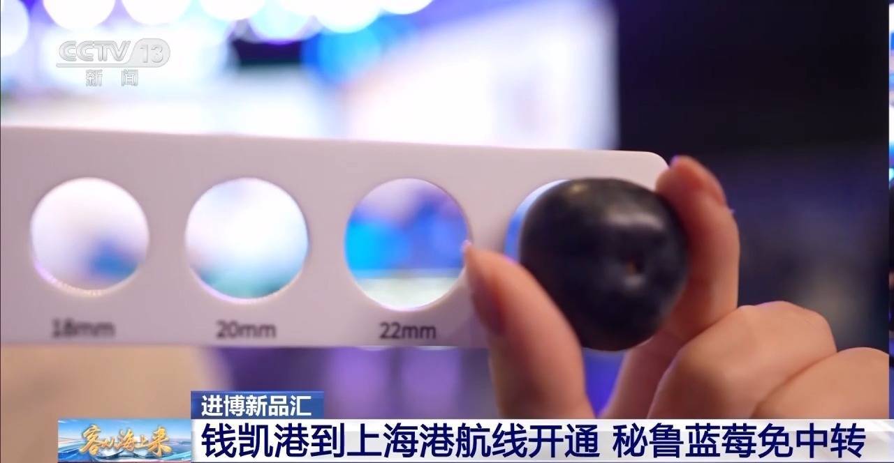 r记者手中的蓝莓也是首发新品之一,它是来自秘鲁钱凯港的沙漠蓝莓,除了个头大,还足够新鲜,这得益于秘鲁钱凯港至上海港航线的顺利开通。企业介绍,过去从南美洲西岸运往亚洲的水果通常需要在其他港口中转,而直航航线开通以来,整个航程从原本的30多天缩短至20天左右。
